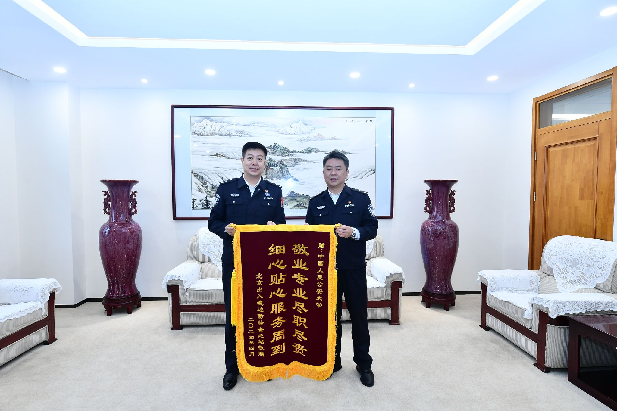 北京出入境边防检查总站向学校赠送锦旗