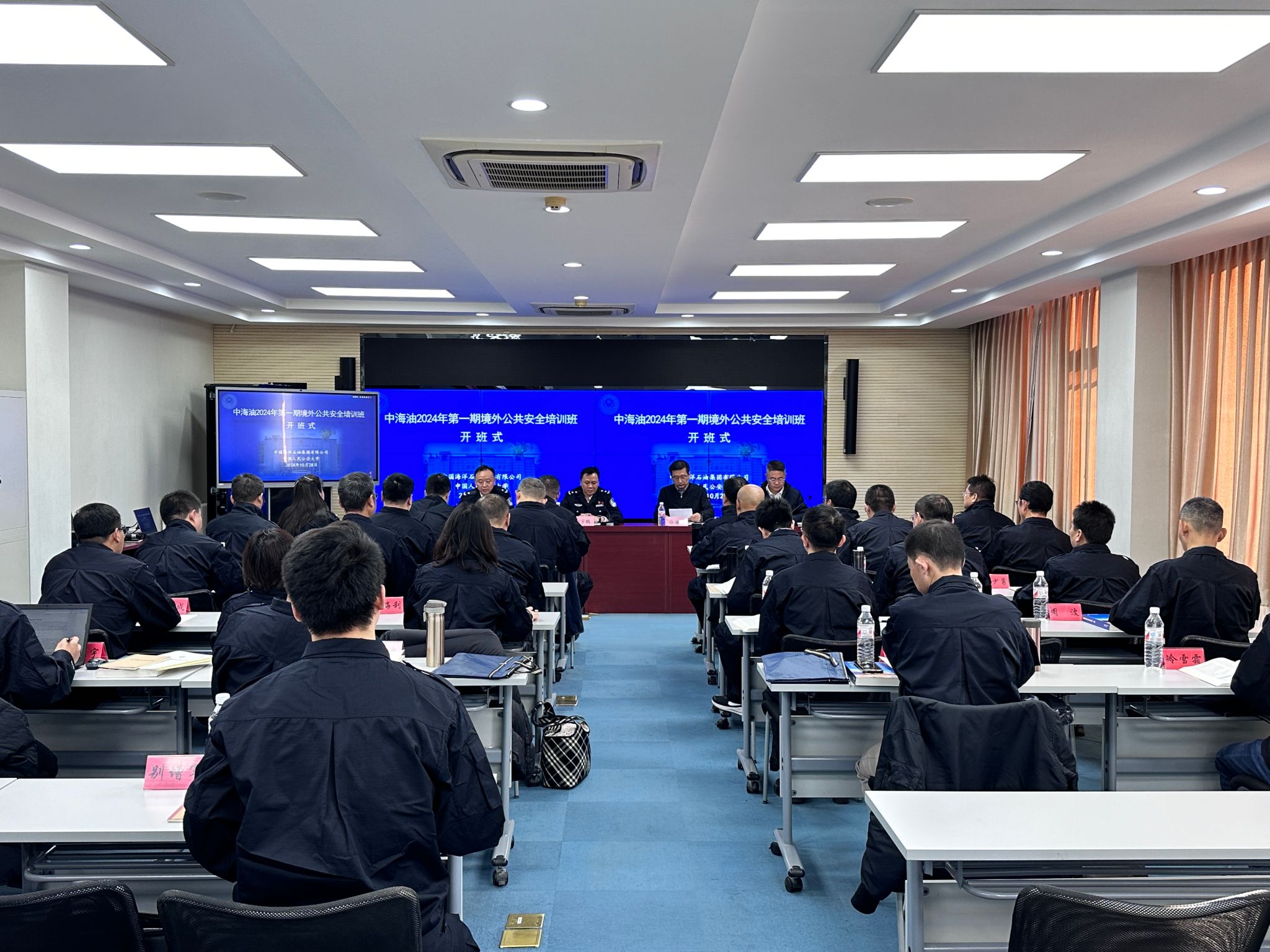 中国海洋石油集团有限公司2024年第一期境外公共安全培训班10月28日在BEAT365举行,校党委副书记刘宇鹏出席开班式并致辞,中海油集团法律外事工作部徐海栋副总经理出席开班式并作培训动员讲话。近年来,中海油集团以全面深化改革为动力,加快改造提升传统产业和布局战略性新兴产业体系,健全完善战略性新兴产业组织保障体系,加快培育发展海洋能源新质生产力,随着“走出去”进程的快速发展,维护境外公共安全,有力应对各种风险挑...