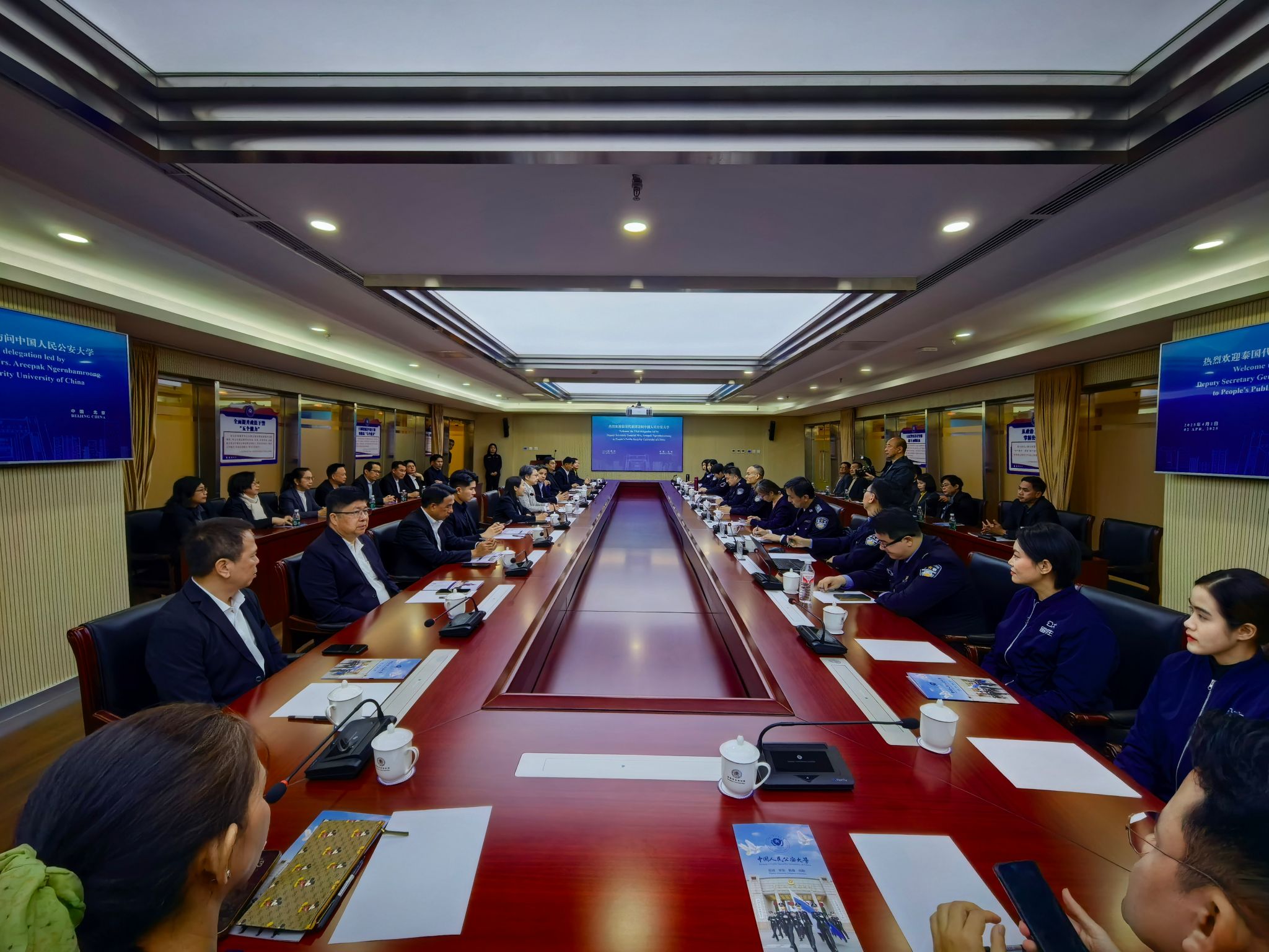 2025年4月2日上午,泰国肃毒委员会副秘书长阿瑞帕率团来校交流访问。校党委委员、副校长刘东华在木樨地校区会见阿瑞帕一行。泰国驻华大使馆参赞刘光力、部禁毒局国际合作处处长佟立国等有关同志参加会见。双方简要回顾了中泰两国的执法合作历程,一致认为,两国有着良好的执法合作基础,在打击毒品犯罪等关键领域取得的合作成果尤为显著。双方围绕加强执法人员培训及学术交流合作方面广泛交换意见并达成初步共识,表示将充分借...