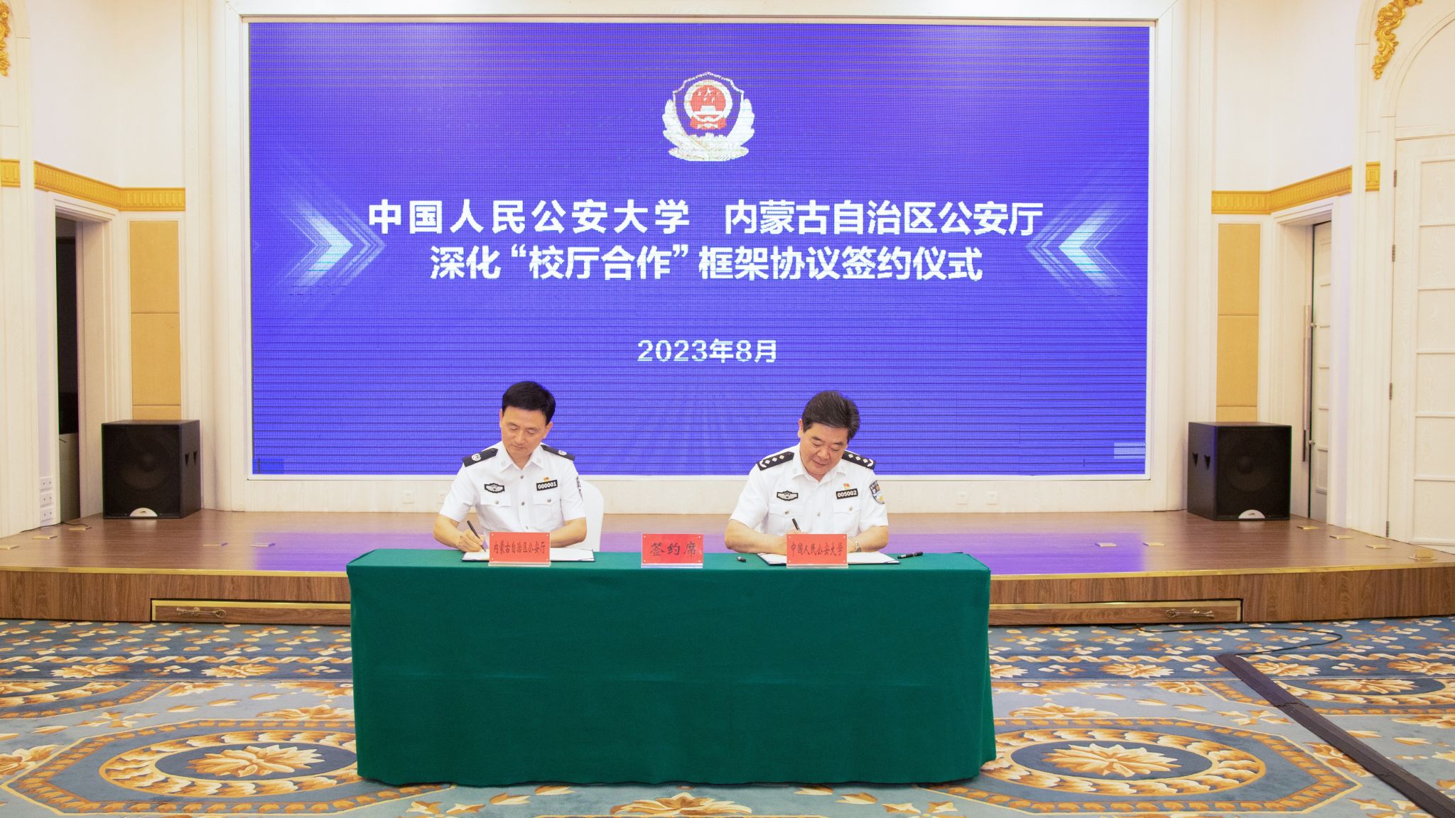 内蒙古自治区副主席、公安厅党委书记、厅长郑光照与校党委副书记、校长曹诗权分别代表厅校双方签署协议