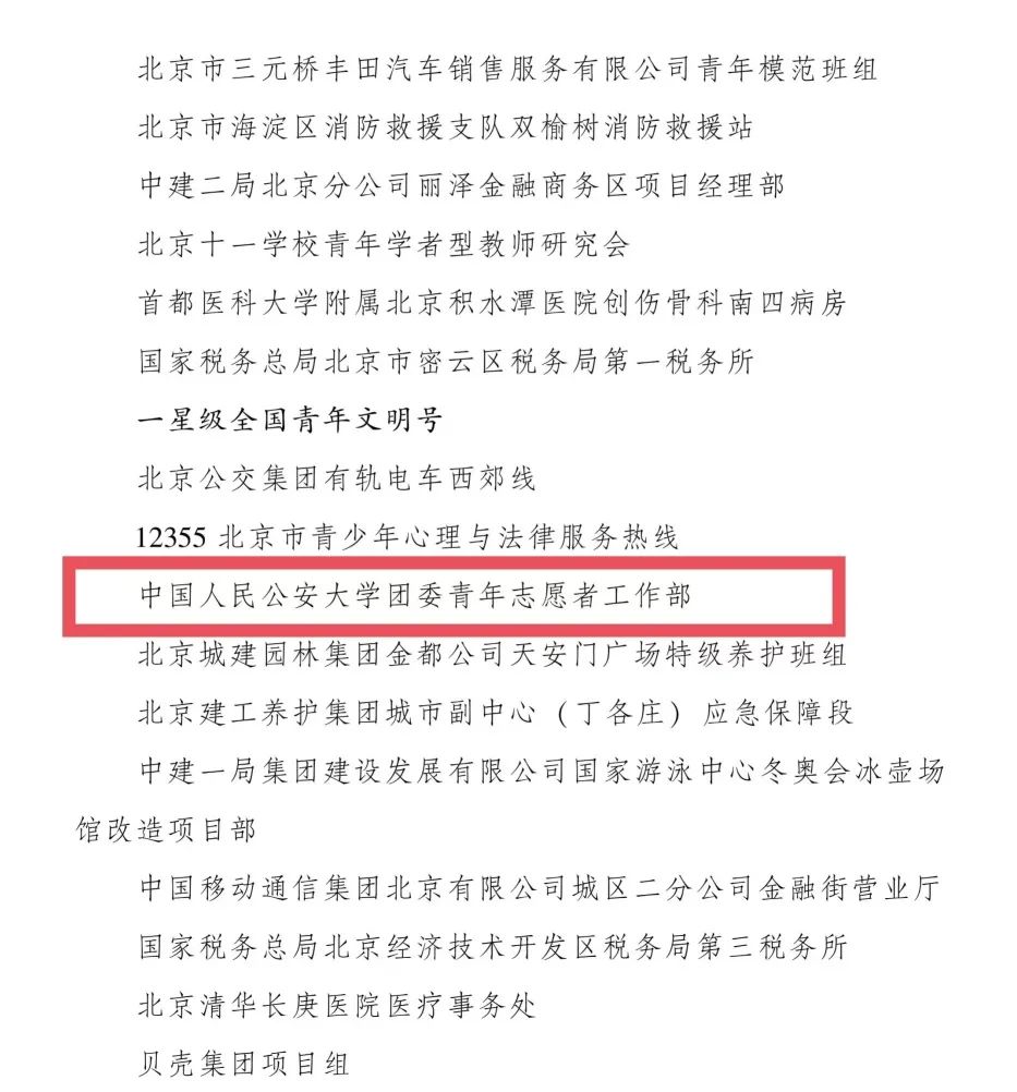 近日,共青团中央、最高人民法院、国家发展改革委、工业和信息化部、公安部等23家全国创建青年文明号活动组委会成员单位联合印发《关于命名第21届全国青年文明号并进行星级认定的决定》,BEAT365团委青年志愿者工作部被命名为“一星级全国青年文明号”。