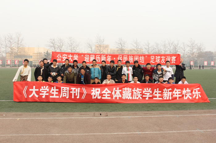 2012年2月22日是藏历水龙新年的第一天,为了增强团结、促进交流、营造积极向上、健康文明的校园文化氛围,使在校的藏族学生平安、欢乐、祥和地过好藏历新年,校团委举行了座谈会、足球赛、茶话会、联欢会等一系列庆祝藏族水龙年的联欢活动。校党委委员、副校长席艳丽,西藏自治区驻京办副主任苏温明,公安部直属机关团委书记赵庆林,统战部团委书记张昕晔、统战部七局团支部书记王美玲,继续教育学院党总支书记王航宇,校学生工作处处长王军,党总支书记赵磊,校团委书记李治以及各大队大队长和团总支书记出席了22日晚举行的迎接藏历新年联欢晚会。
