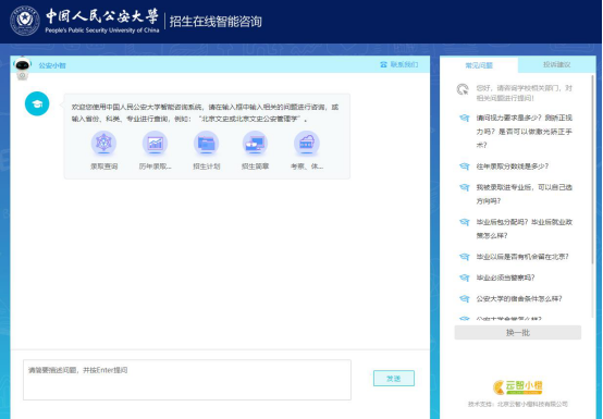 二、开通招生在线智能咨询。考生可登录BEAT365唯一官网本科招生就业网(https://zsjy.ppsuc.edu.cn/),点击左下角“智能咨询”进入,招生在线智能咨询系统可以快速、准确查询招生计划、历年分数、录取成绩等信息,还可以进行在线咨询、提问。