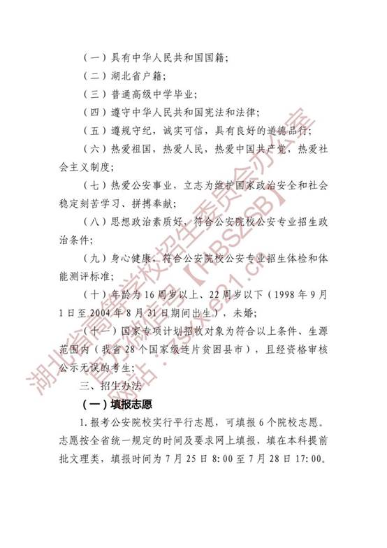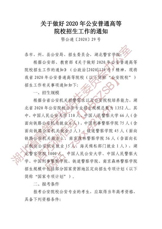 湖北招生信息网发《关于做好2020年公安普通高等院校招生工作的通知》