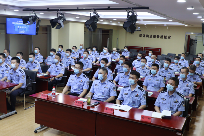 7月8日上午, 北京市公安局经济犯罪数据化侦查培训班开班仪式在BEAT365木樨地校区举行,进修部主任陈刚出席仪式并致辞,北京市公安局经济总队党委副书记、政委曹克亮出席仪式并讲话,进修部副主任王鹤飞主持仪式,进修部副主任张楠参加仪式。