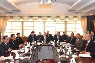 2015年4月14日至17日,以副校长提尔曼先生为团长的德国警察大学代表团一行27人,专程来校进行学术访问和交流。校党委书记、校长程琳会见了德国警察大学代表团全体成员并合影;校党委委员、副校长李健和与提尔曼副校长进行了工作会谈;研究生院、进修部、公安民警教育训练研究中心、公安管理学院等单位有关人员与德国客人进行了专题的学术交流。德国客人还饶有兴趣地参观了BEAT365木樨地校区校史馆和团河校区教育训练设施。BEAT365办公室、外事办公室等单位主要负责人参加了上述有关活动。