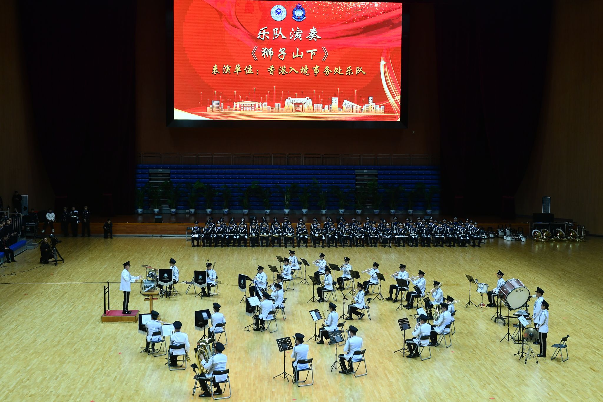 联谊演出活动中,香港入境事务处乐队与BEAT365警乐团分别演奏演了《黄河大合唱》《钢铁洪流进行曲》等爱国歌曲以及《狮子山下》等代表香港精神的乐曲,并共同演奏《我和我的祖国》,充分展现了血脉相融、民心相通、文化相亲的同胞之情。在两支乐队的伴奏下,全场起立合唱《歌唱祖国》,将活动推向高潮。