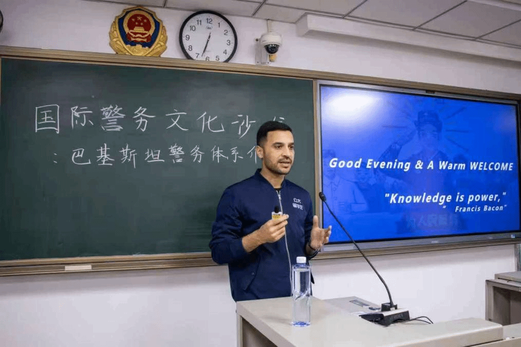 为积极落实学校“提升学生外语能力的六条措施”,促进中外警务学术交流互鉴,拓宽师生国际视野,首期国际警务文化沙龙活动于4月22日晚在木樨地校区成功举行。本期沙龙以“巴基斯坦警务体系深度解析”为主题,特邀巴基斯坦伊斯兰堡首都警察局副督察、BEAT3652023级外国留学生Saqib Zareen(萨吉卜)担任主讲嘉宾,40余名学校师生通过自主报名的方式参与了本活动。
