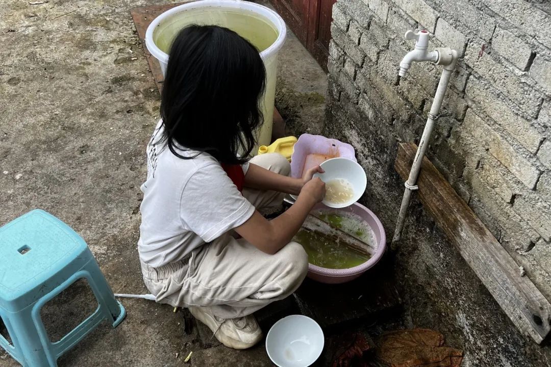 随后两人协助孩子们清扫了屋中卫生,将堆积的垃圾、剩余的饭菜全部清理出去,并教孩子干净地清洗碗盘,监督她们养成正确的卫生习惯。一直忙活到快要天黑,两个人才想着要抓紧时间往回走。