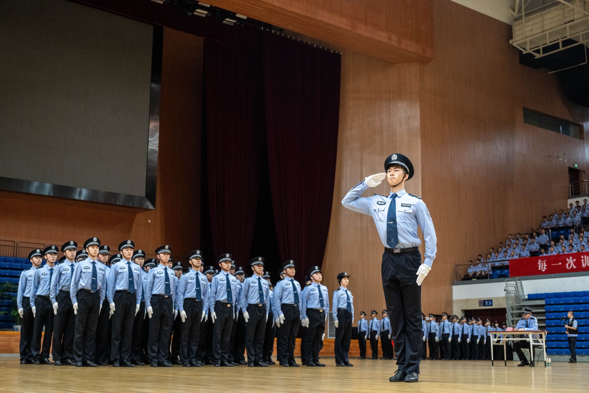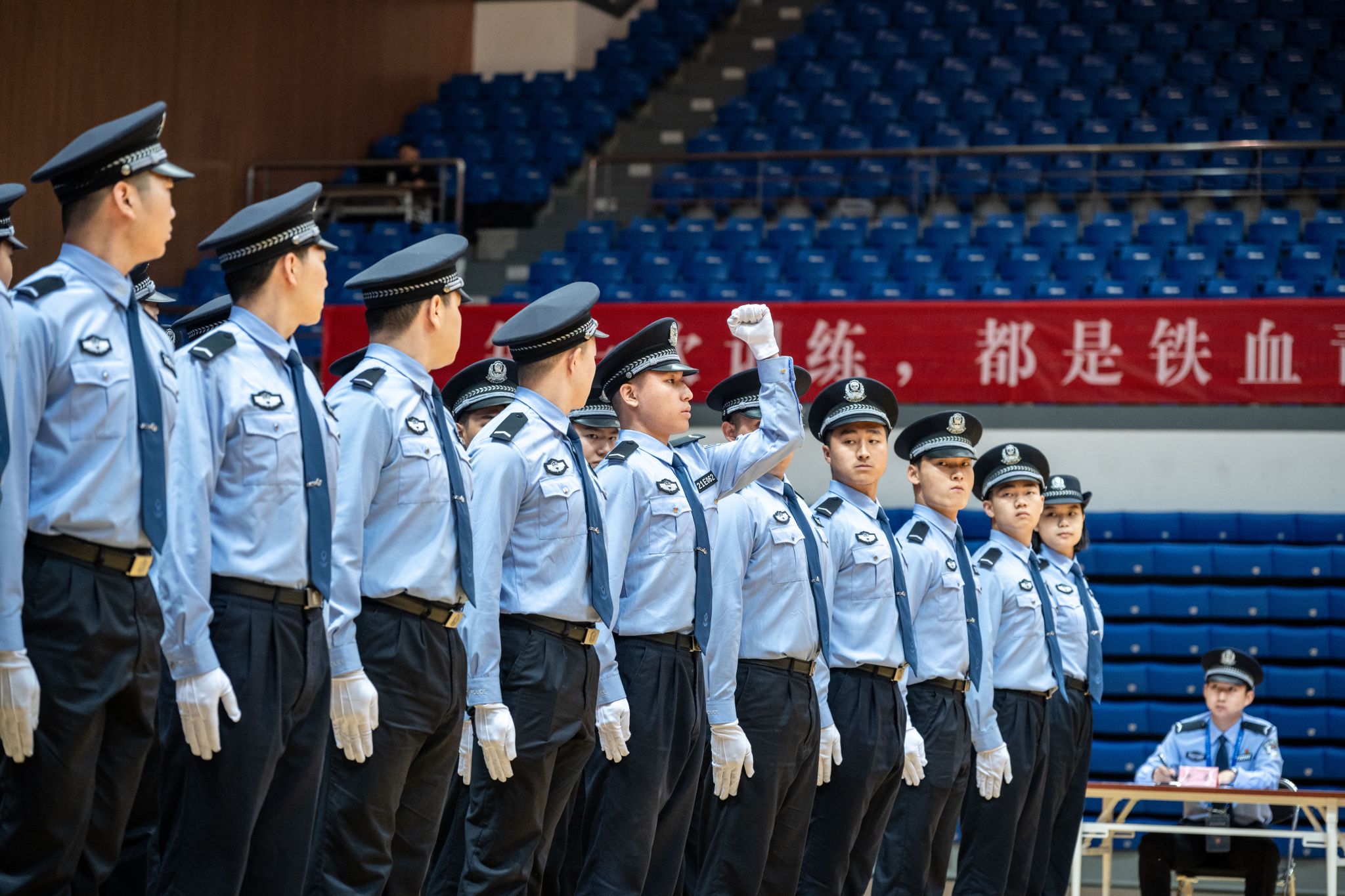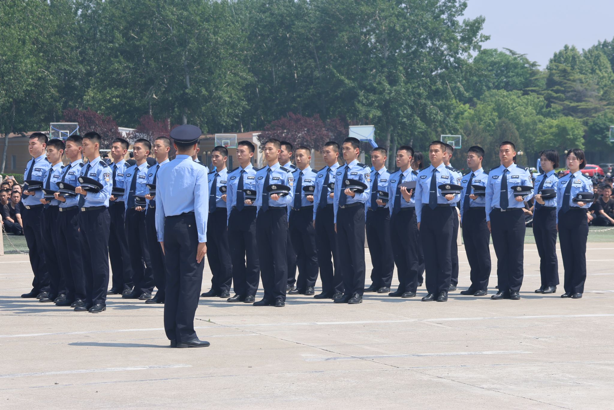 会操过程中,指挥员跑位精准、口令清晰、声音洪亮,队列人员精神饱满、动作标准、步伐一致。从坚毅挺拔的警姿、迅速连贯的报数,到动作整齐的停止间转法,再到协调一致的行进与立定,赢得了现场师生的阵阵掌声,充分展示了青年预备警官严整规范的警容、饱满昂扬的斗志、团结向上的力量与令行禁止的作风。