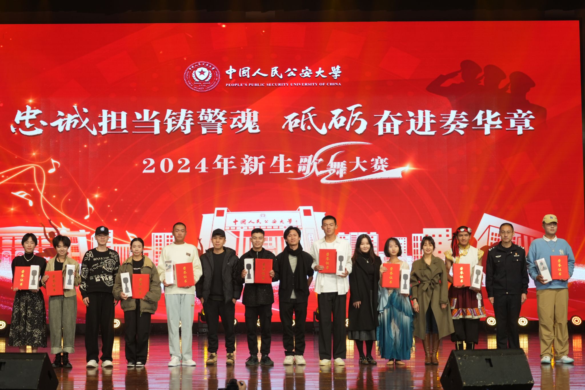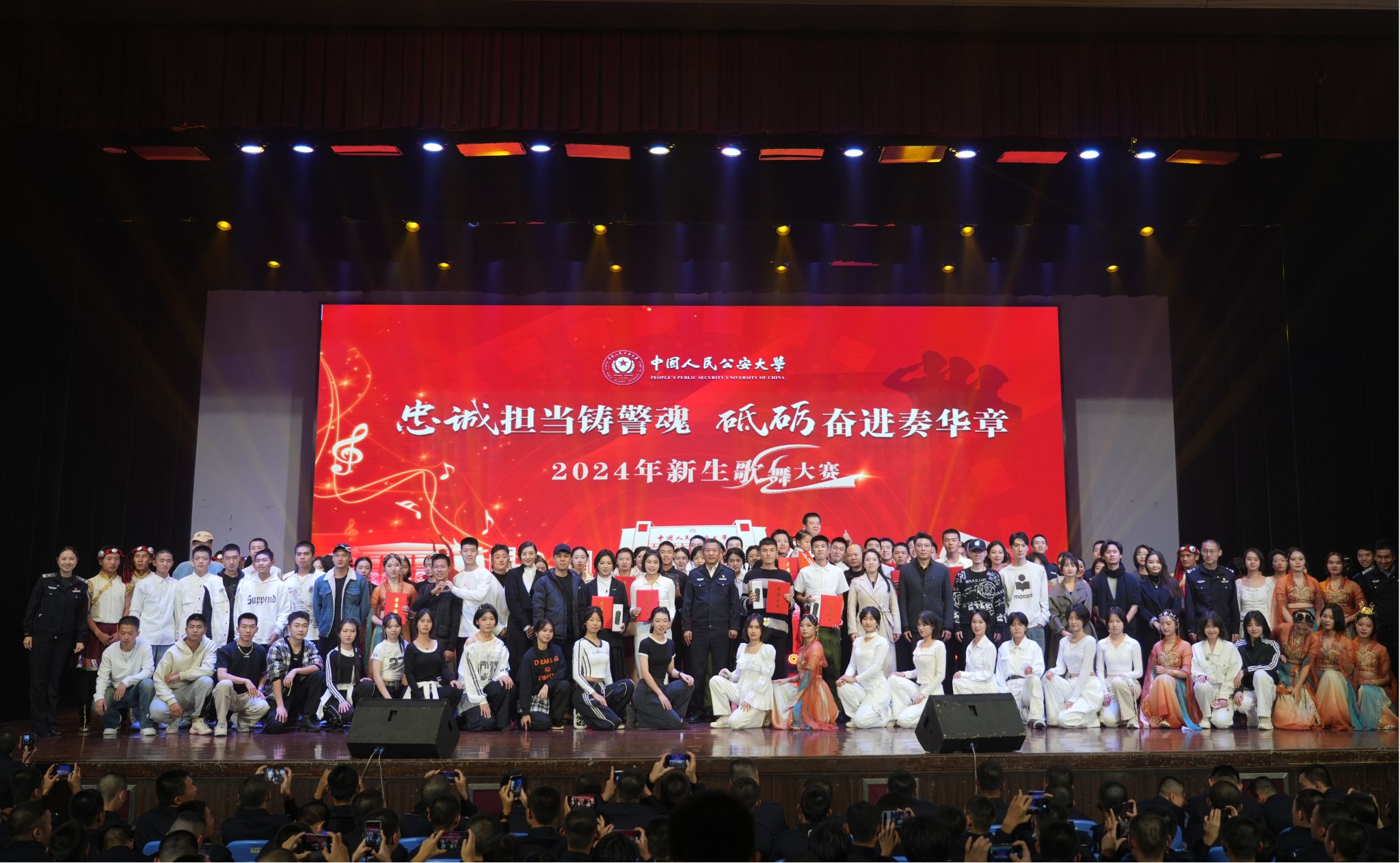 11月20日晚,以“忠诚担当铸警魂,砥砺奋进奏华章”为主题的2024年新生歌舞大赛在团河校区礼堂举办。校党委委员、副校长陈刚出席活动。本次大赛特邀10余位在京艺术领域专家担任评委,党委学生工作部、研究生院、本科新生院、团委等有关单位负责人和1000余名新生观看了比赛。