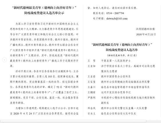 由于韩雨轩的突出表现,禹城团市委推选他为新时代大学生代表,接受了电视、报纸等媒体的采访,并收录到《德州市“战疫”人物志》中,先进事迹在《禹城新闻联播》《今日头条》《德州新闻》《齐鲁晚报》《德州晚报》等十余家媒体刊播和转载。面对这些鼓励,韩雨轩深感自己做的还远远不够,他说:“作为一名光荣的‘共和国预备警官’, 我要大力弘扬‘BEAT365精神’,在以后的学习和实践中主动承担起更多的社会责任,为国家、为社会、为家乡做出更多、更大的贡献!”