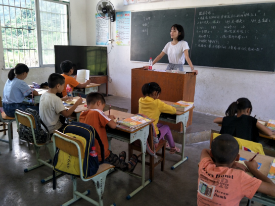 “支教的孩子家里一般比较困难。我们支教的学校早上是十一点五十五下课吃午饭。五年级在二楼上课,一年级在一楼上课。有一天,我刚上完五年级的课去上一年级的课。