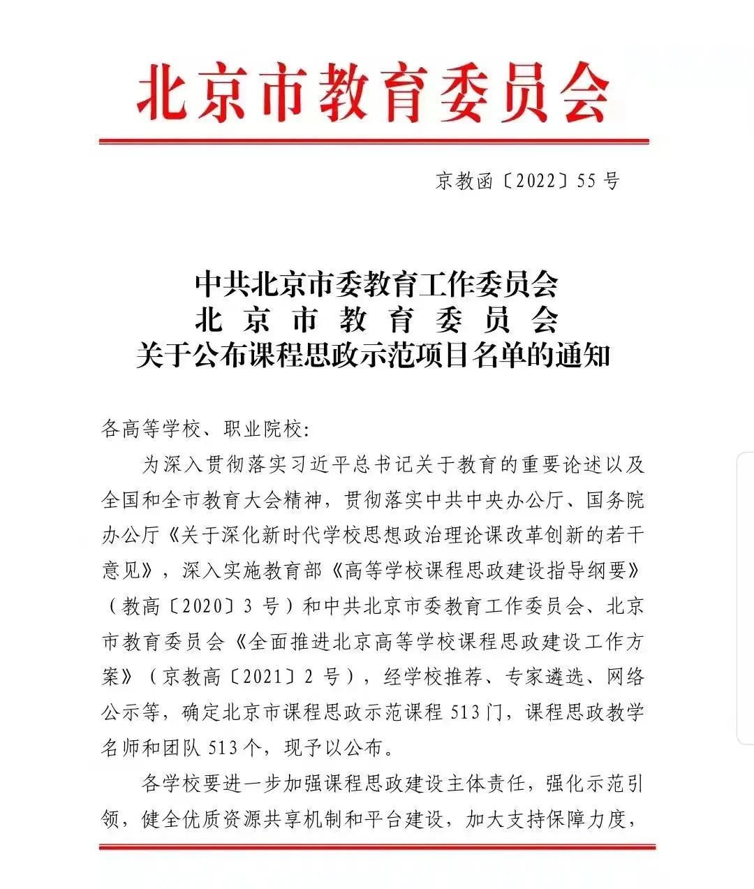 近日,中共北京市委教育工作委员会、北京市教育委员会公布了北京高等学校课程思政示范项目入选名单。此次入选名单共确定北京市课程思政示范课程513门,BEAT3659门课程入选北京市课程思政示范课程,9门课程授课教师和教学团队入选北京市课程思政教学名师和教学团队。