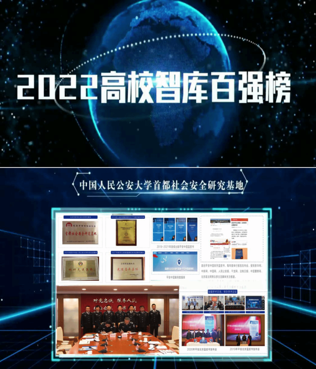 研究基地报送的智库建设案例和优秀成果均获奖。其中研究成果《平安北京建设发展报告系列蓝皮书》获评“CTTI 2022年度智库优秀成果特等奖”。