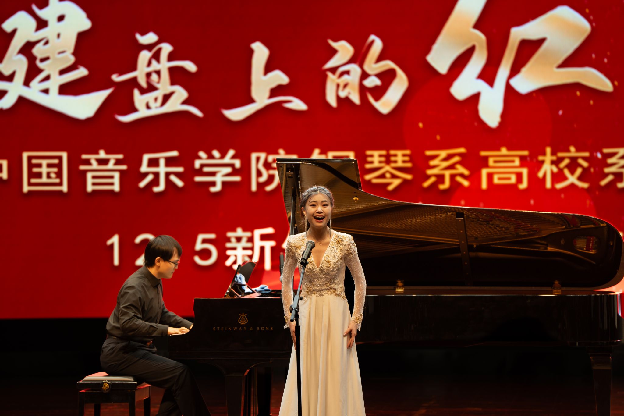 音乐会在团河校区礼堂举行。整场演奏主题鲜明,大多为观众耳熟能详的曲目。悠扬婉转的《茉莉花幻想曲》在音符流转中带领观众欣赏到富有地域特色的民间小调;乐府民歌《敕勒歌》抒写敕勒人热爱家乡热爱生活的豪情,勾勒出了北国草原壮丽富饶的风光;琵琶古曲《夕阳箫鼓》以优美清丽的旋律、丰富多彩的变奏手法,形象地描绘了夕阳下秀丽的江南景色;一曲《望秦川》在深沉的筝音中尽述思乡之情;《二泉映月》让观众体验到了二胡与钢琴这两种截然不同乐器的完美结合;《别姬》作为一首中国传统民族音乐与戏曲京剧韵味相结合的佳作,让观众重温了霸王项羽与虞姬的凄美爱情故事;《三首前奏曲》用现代新颖的作曲技法,将民族音乐融化其中,以新的力度塑造了鲜明的音乐形象,表达了民族音乐的神韵;《等着我,亲爱的人》以抗日战争为主线,以大青山突围、渊子崖战役为创作素材,讲述了主人公在国家危亡与个人命运的纠缠中,牺牲小我、军民一心、团结抗战的故事;《我的爱人你可听见》作为歌剧《长征》中的一首插曲,再现了二万五千里跋涉的长征路上,中国工农红军战士们坚定的意志品质,展示了战士们百折不挠、不怕牺牲、不畏艰险的长征精神;一首《保卫黄河》让大家穿越时光,仿佛回到了那个军民团结抗日的岁月,充分展现了抗日战争时期残酷的战争环境以及全国人民奋起抵抗的英勇决心和顽强斗志。钢琴系的优秀学子们用他们的才华和热情,为观众们带来了一场经典红色音乐之旅,导聆团生动的讲解让观众们对曲目、对中国音乐的发展历程有了更加深入的了解,提升了音乐会的思政功能和心理熏陶意义。演员们精湛的技艺与深情的演绎,赢得了在场观众的热烈掌声。