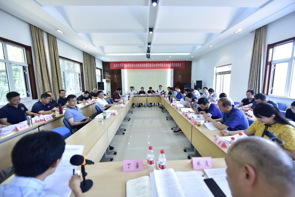 会议期间,全体参会人员聚焦深入学习习近平总书记在中央和国家机关党的建设工作会议上的重要讲话精神、赵克志部长专题党课精神,学习贯彻全国公安工作会议和全国公安院校政治建设工作座谈会精神,对照“不忘初心、牢记使命”主题教育“守初心、担使命、找差距、抓落实”总要求,认真审议讨论《关于进一步加强学校政治建设的实施意见》《“不忘初心、牢记使命”主题教育方案》《本科教学工作会议主报告要点》《“双一流”建设中期自评报告》等学校文件讨论稿,集中听取有关职能部门负责人就起草有关文件所作的汇报发言和教学院院长、党组织书记就学科专业建设、党建工作等所作打算,分组进行交流研讨,围绕学校进一步强化政治建设、认真筹备开展“不忘初心、牢记使命”主题教育、加强本科教学工作和“双一流”建设、深化教学院改革、加强师资队伍建设等一系列重大问题研提有关意见建议。全体参会人员以高度负责的态度和强烈的主人翁精神,深入学习思考,充分交流讨论,坦诚交换意见,积极建言献策,使本次座谈会成为一次深入学习领会习近平新时代中国特色社会主义思想、加强学校政治建设的学习培训会,为扎实开展“不忘初心,牢记使命”主题教育做好充分准备的思想动员会,坚持不懈推动学校重点工作、明确目标要求、落实主体责任的工作部署会和凝心聚力、团结一致,激发奋进精神的改革推进会,取得了理想成效。