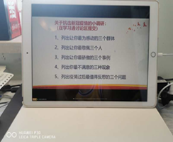 在完成课程导论部分的内容后,李艳教授结合党的理论政策教育和现实国情教育这门课程任务定位,马上提出:举国上下正在进行的疫情防控的人民战争、总体战和阻击战,是当下中国最大的国情,是第一位的任务。在前期学生掌握抗疫基本材料基础上,她用《武汉保卫战》的视频帮助同学们全景式地回顾了全民抗疫、众志成城的奋斗历程,并提出5个问题让同学们在学习通讨论区回答:最为感动的群体、最敬佩的人物、最骄傲的事例、最不满意现象、最值得反思的问题,引导学生深入辩证地思考这场突如其来的疫情,切身感受这场大考带给自己的生命教育、责任教育和感恩教育。为进一步激发学生的爱国主义情怀,她又介绍和引用了鲁迅先生关于“民族脊梁”名言内容和写作背景,并播放了自己为思政课微信公众号2018年“红七月”活动录制的配乐朗诵:方志敏烈士《可爱的中国》(节选),激励学生把个人命运与祖国民族命运紧密相连。在课程最后,她用《坚信爱会赢》这首歌表达抗击疫情必获全胜的坚定信心,并请同学们进一步思考并引出下一次的教学主题:中国必胜的信心来自哪里?