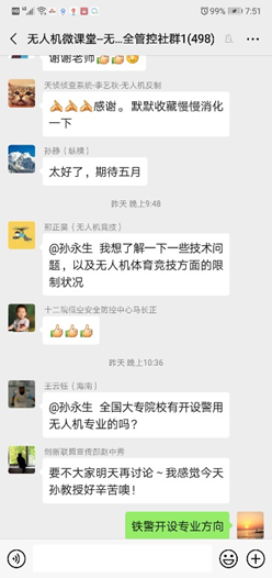 在全国公安机关勠力同心抗击新冠肺炎疫情的关键时期,作为减少接触风险和弥补警力不足的有效手段之一,警用无人机正成为抗击疫情的有力武器,在搜寻失踪疑似病人、喊话劝导、宣传、运送物质等方面发挥了重要作用。特别是湖北公安机关将警用无人机广泛应用于疫情防控工作中,不仅为各地公安机关提供了鲜活的经验,更为公安院校实战化教学改革积累了宝贵的资源。孙永生副教授在第一时间联系湖北省公安厅,收集警用无人机战“疫”案例,并及时将其充实到即将出版的《无人机警用实战》一书中,同时提供给相关课程组的教师在线上教学中使用。